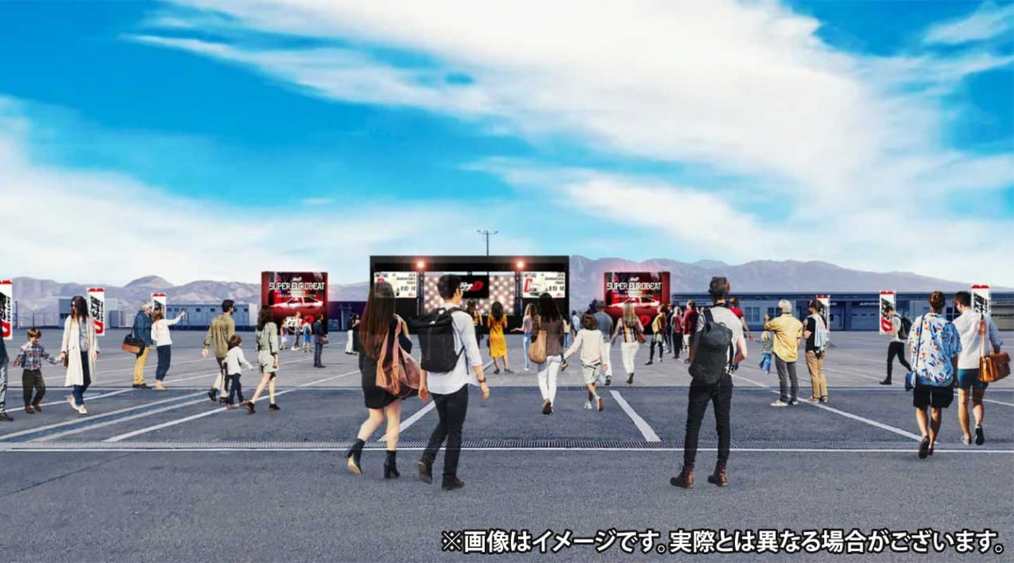 원화전 & 복제 원화 판매, 아티스트에 의한 스테이지, 씬 재현 전시, 콜라보 메뉴 판매, 퍼레이드 런 등, 「이니셜 D」의 세계에 듬뿍 붙는 뜨거운 하루.